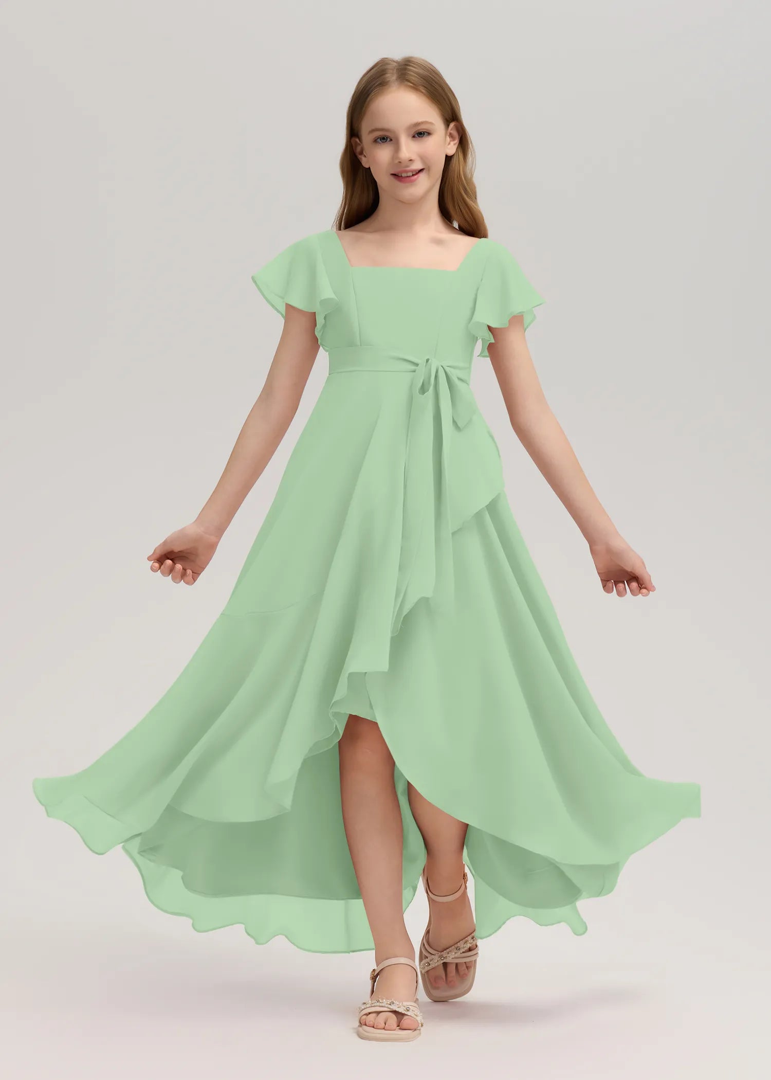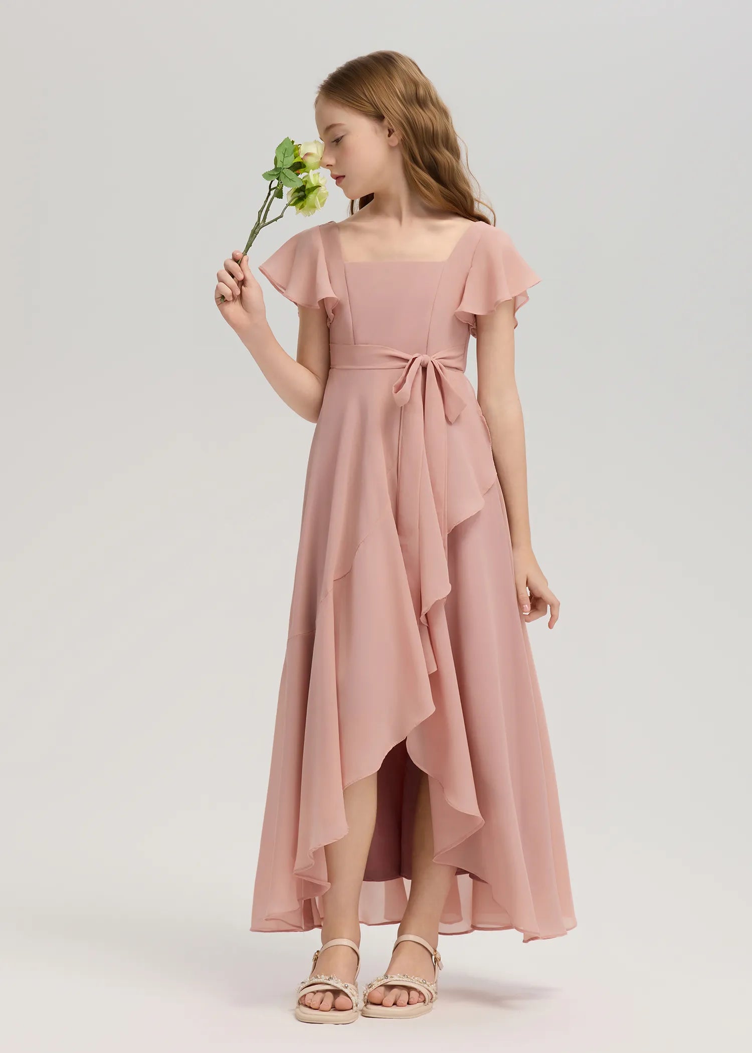 - 🌟 FLÜGELÄRMEL-ELEGANZ: Die Flügelärmel bieten Komfort und Charme, geeignet für kurzärmelige Brautjungfernkleider für Jugendliche in allen Jahreszeiten.