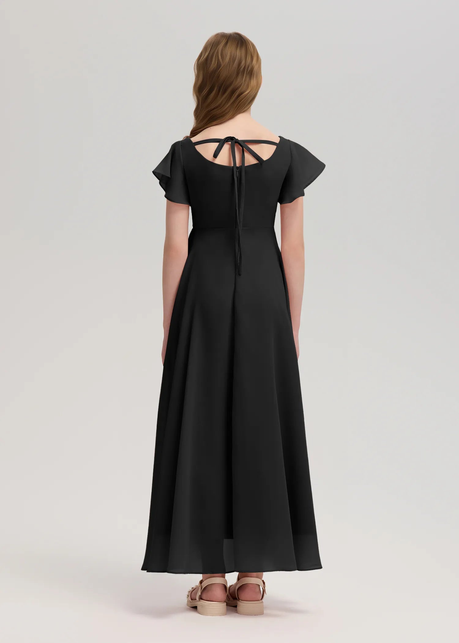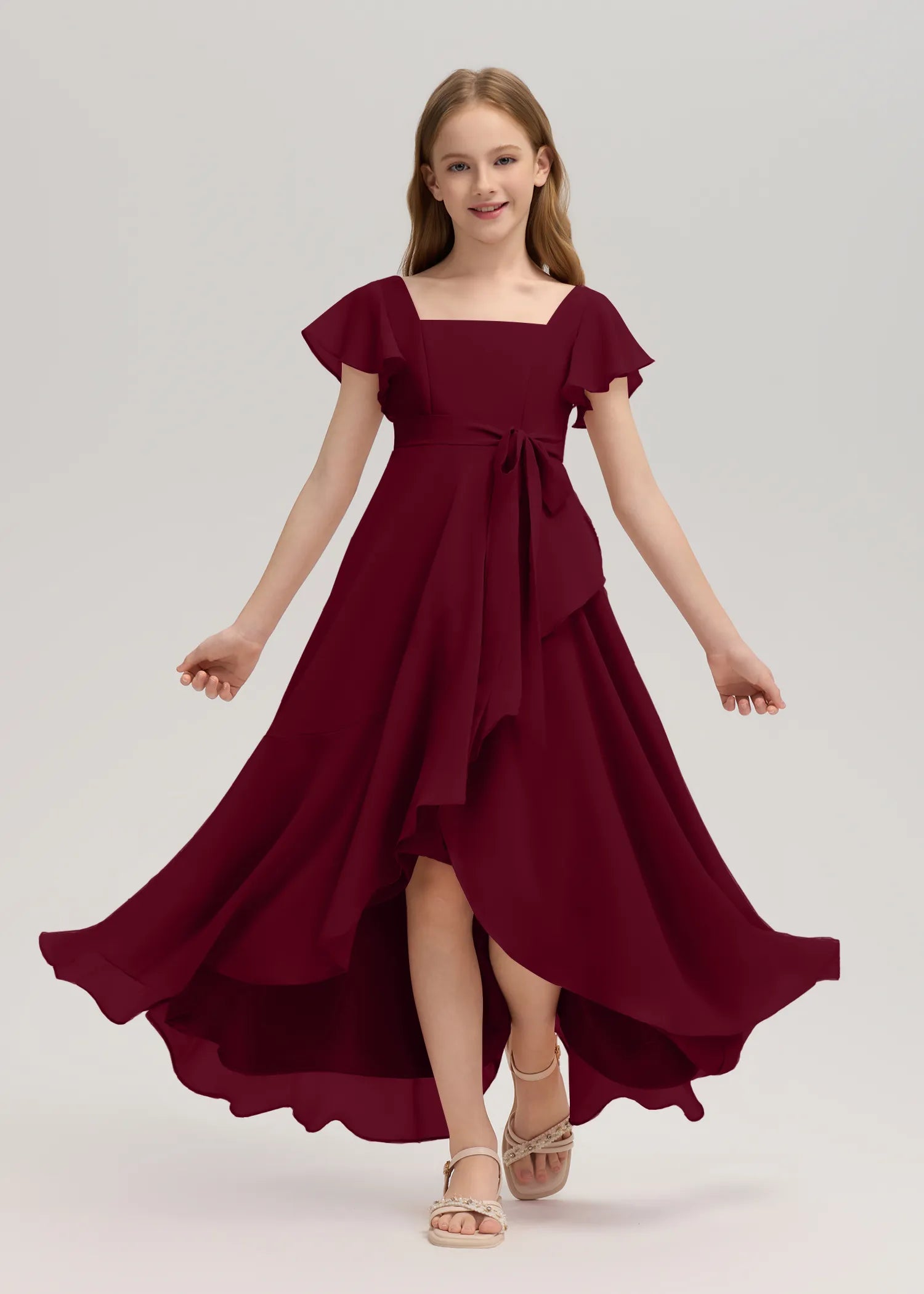 - 🌸ELEGANTES ASYMMETRISCHES CHIFFONKLEID:Dieses atemberaubende Junior Brautjungfernkleid verfügt über einen eleganten asymmetrischen Saum, der vorne kürzer und hinten länger ist, und schafft so eine moderne und anmutige Silhouette. Der fließende Chiffonstoff bewegt sich bei jedem Schritt wunderschön und ist perfekt zum Tanzen und für den Gang den Gang entlang. Das zeitgenössische Design kombiniert klassische Eleganz mit trendigen Stilelementen, die Ihre Kleine hervorheben werden.